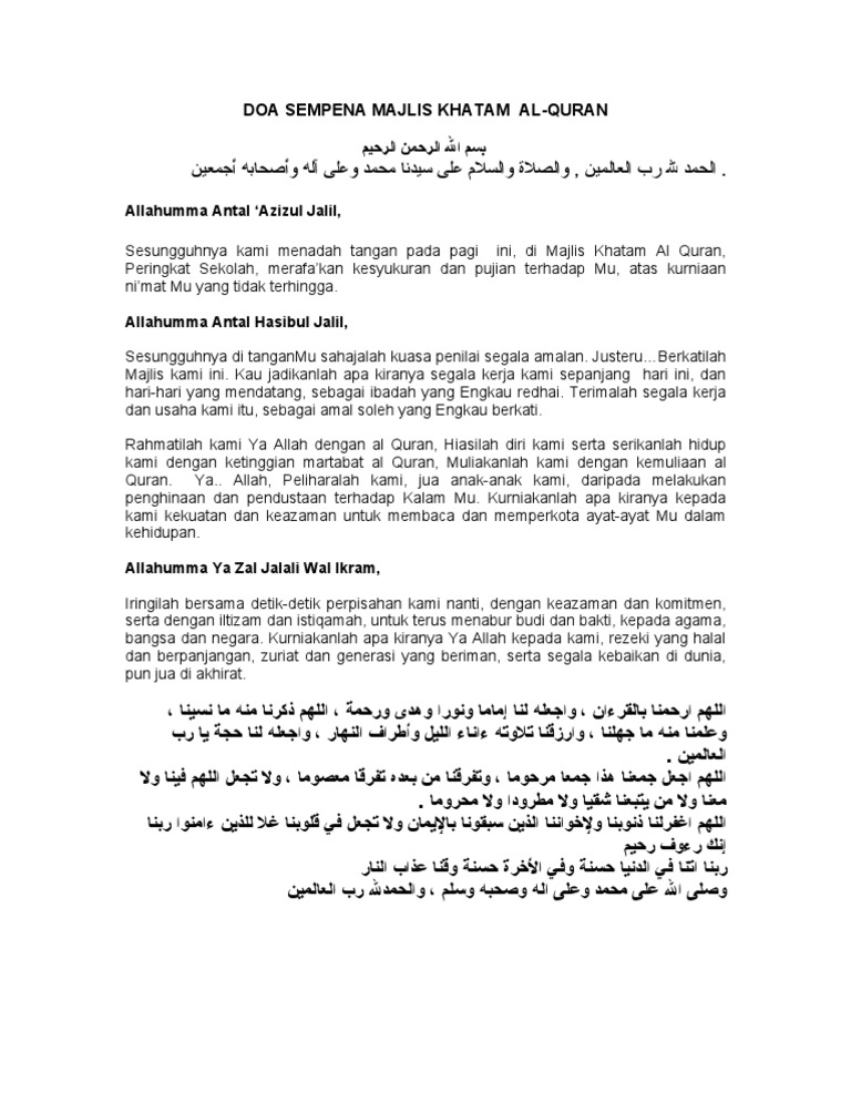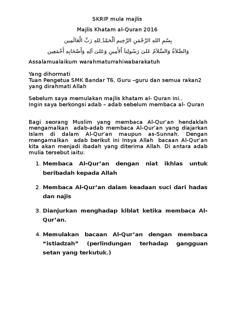 Skrip Dan Doa Majlis Mula Khatam Al Quran 2016 Pdf